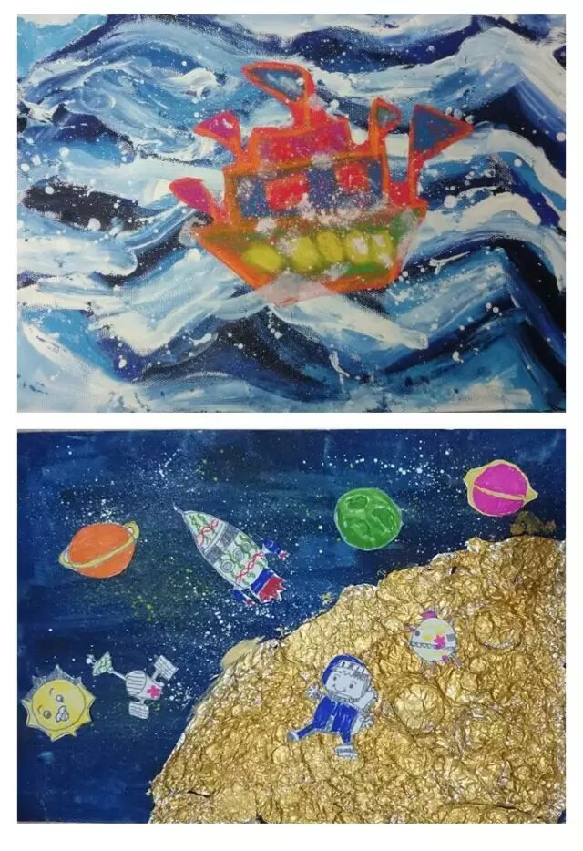 从小蚂蚁到宇宙太空,从水彩到版画,我们让天马行空的想象,以多样的方式,在画笔下绽放。