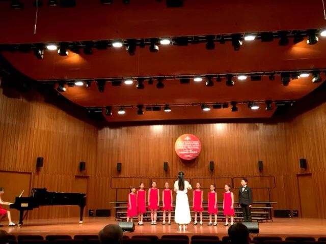 正式比赛啦!悦耳的和声响彻在新加坡华乐音乐厅,智慧小百灵们毫不怯场,他们将最美最动听的和声与最向上最阳光的精神风貌展现了出来。